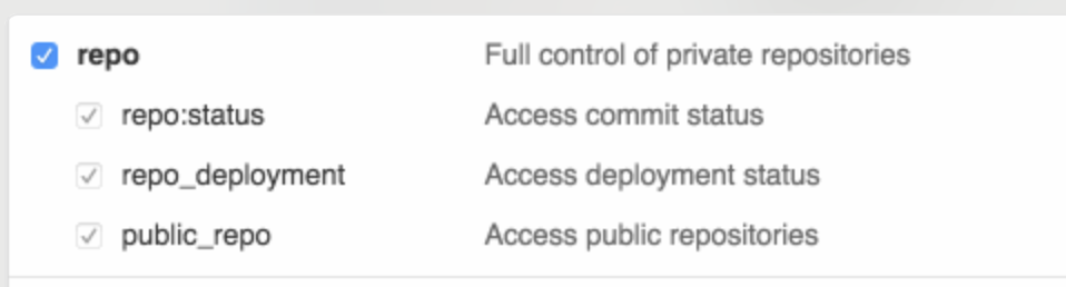 Set the scope of the token to the “repo” level (see image below):